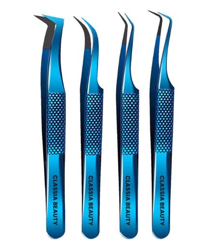 Pack of 4 eyelash extension tweezer Dull (Silver)