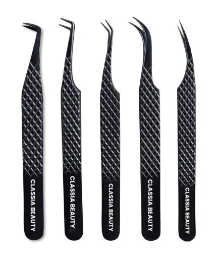 Pack of 5 eyelash extension tweezer Non Fiber Tip (Black)