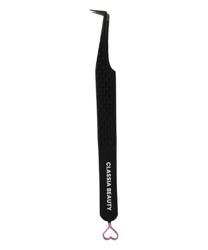 90-degree eyelash extension tweezer with tip plasma and tail pink heart (Black)