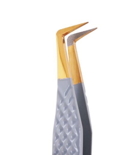 Pack of 2 eyelash extension tweezer with gold Tip (Grey)
