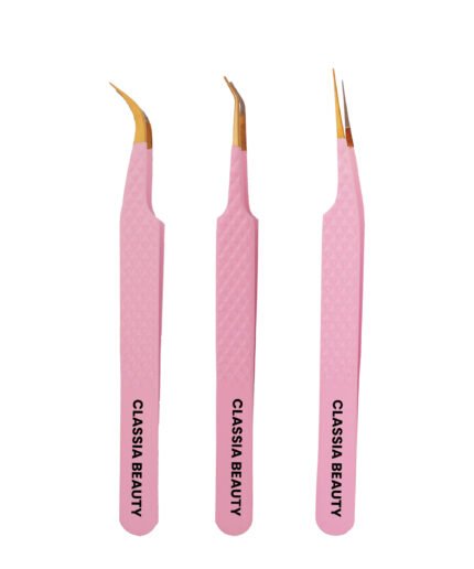 Pack of 3 eyelash extension tweezer with Gold Tip (Light pink)