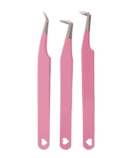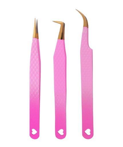 Pack of 3 eyelash extension tweezer with gold Tip tail heart (Pink Double Shade)