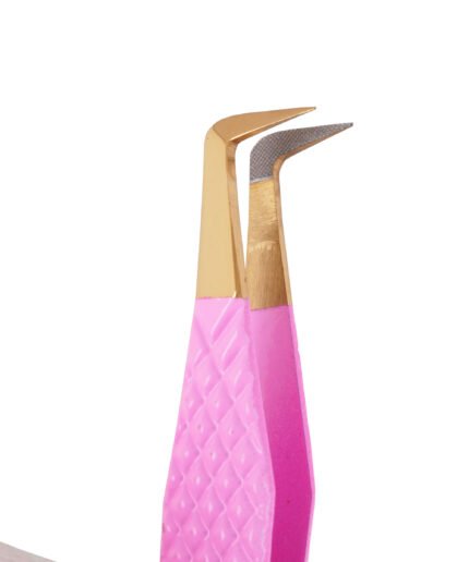 Nano 45-degree eyelash extension tweezer with Gold Tip (Light pink)