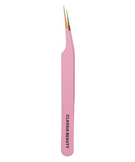 Straight eyelash extension tweezer with gold tip tail heart (Pink Double Shade)