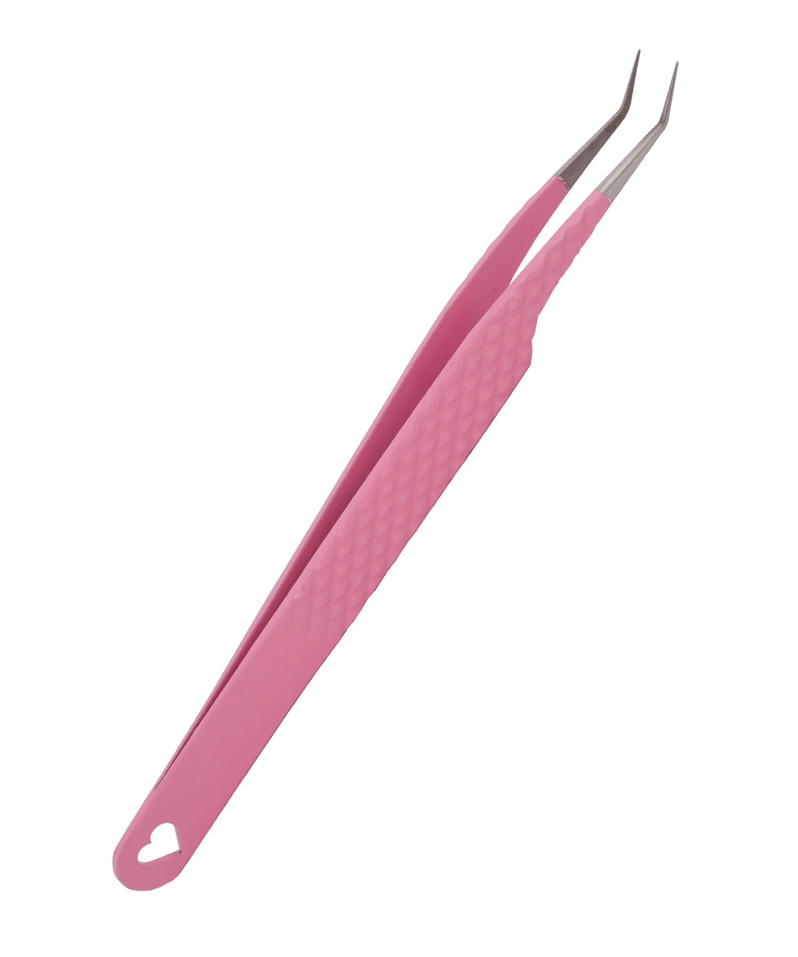 Home TWEEZERS POWDER COATING TWEEZERS EYELASH TWEEZERS 45-degree eyelash extension tweezer tail heart (Pink )