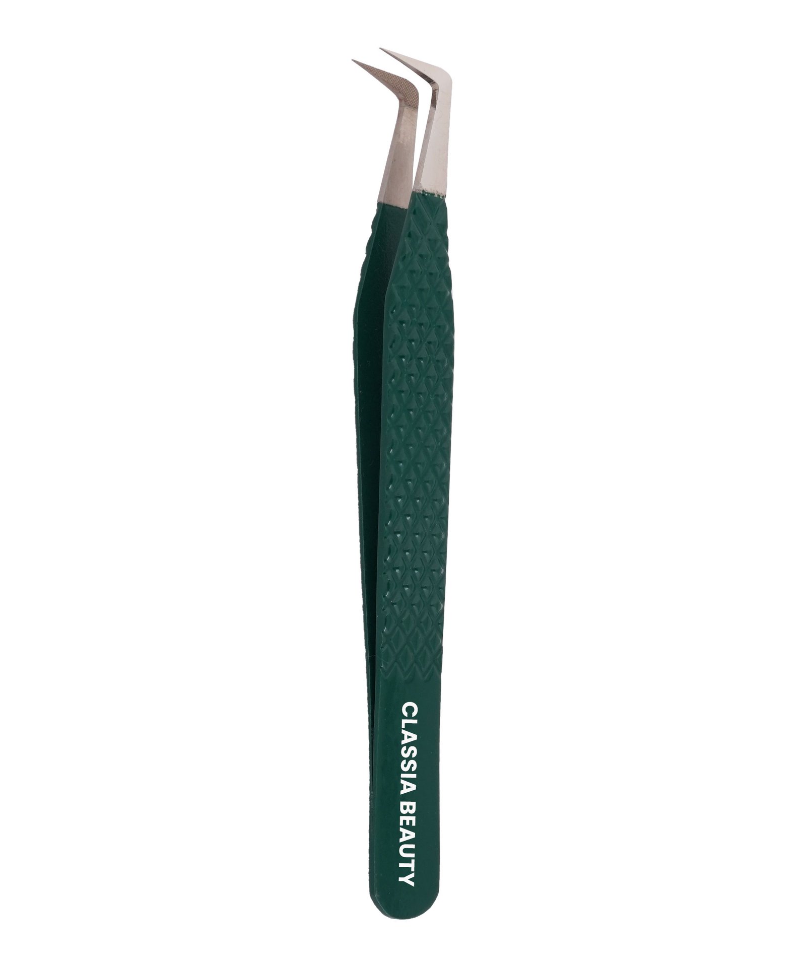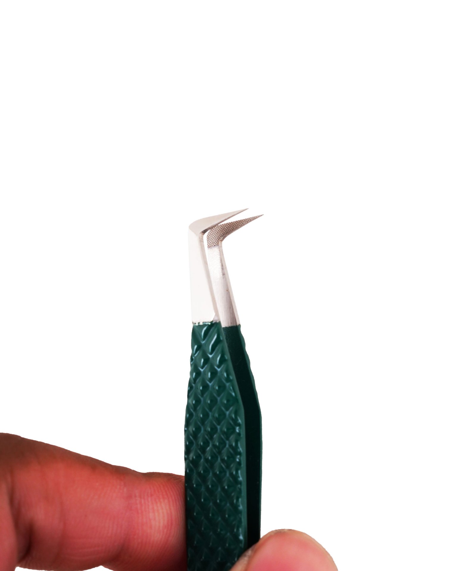 90-degree boot eyelash extension tweezer with silver Tip (Green)
