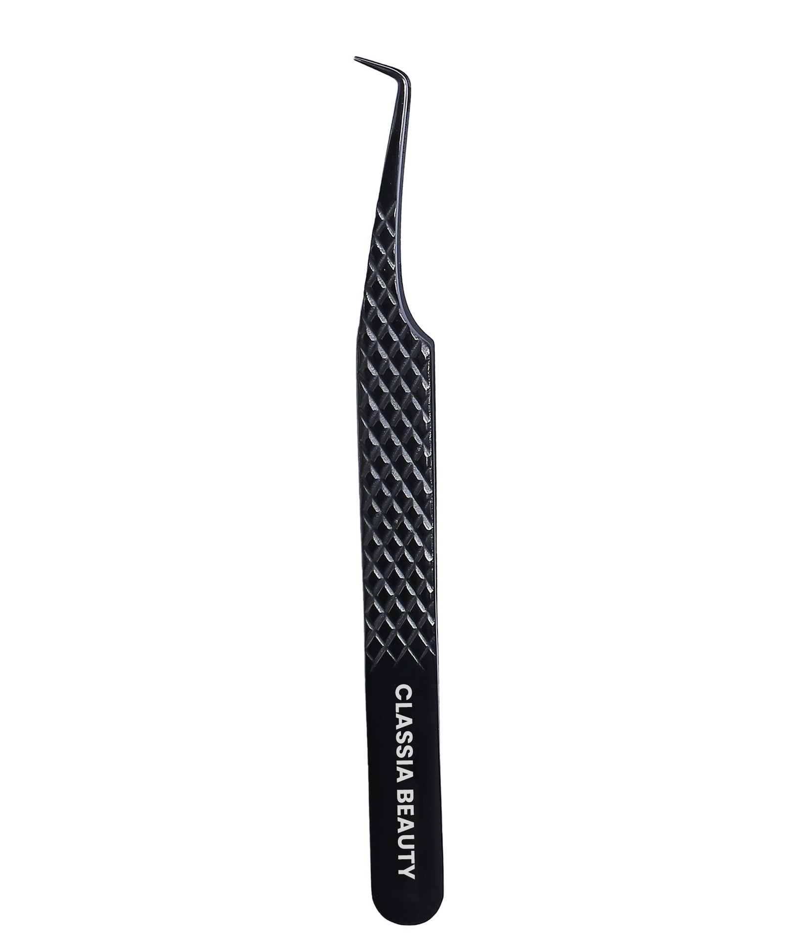 Black 90-degree eyelash extension tweezer These premium stainless-steel lash tweezers offer precision, durability, and effortless control. Perfect for selecting, isolating, and applying eyelash extensions, their fine curved tips ensure easy maneuvering at any angle. Lightweight, rust-free, and compact, they’re ideal for both professional use and everyday beauty routines. The low-resistance, quick-rebound design provides smooth, comfortable handling every time.