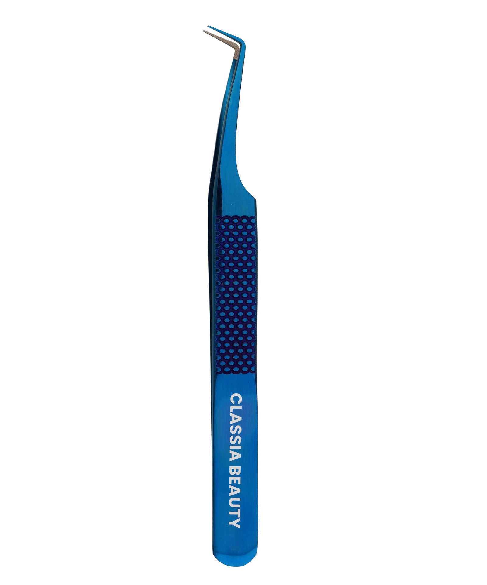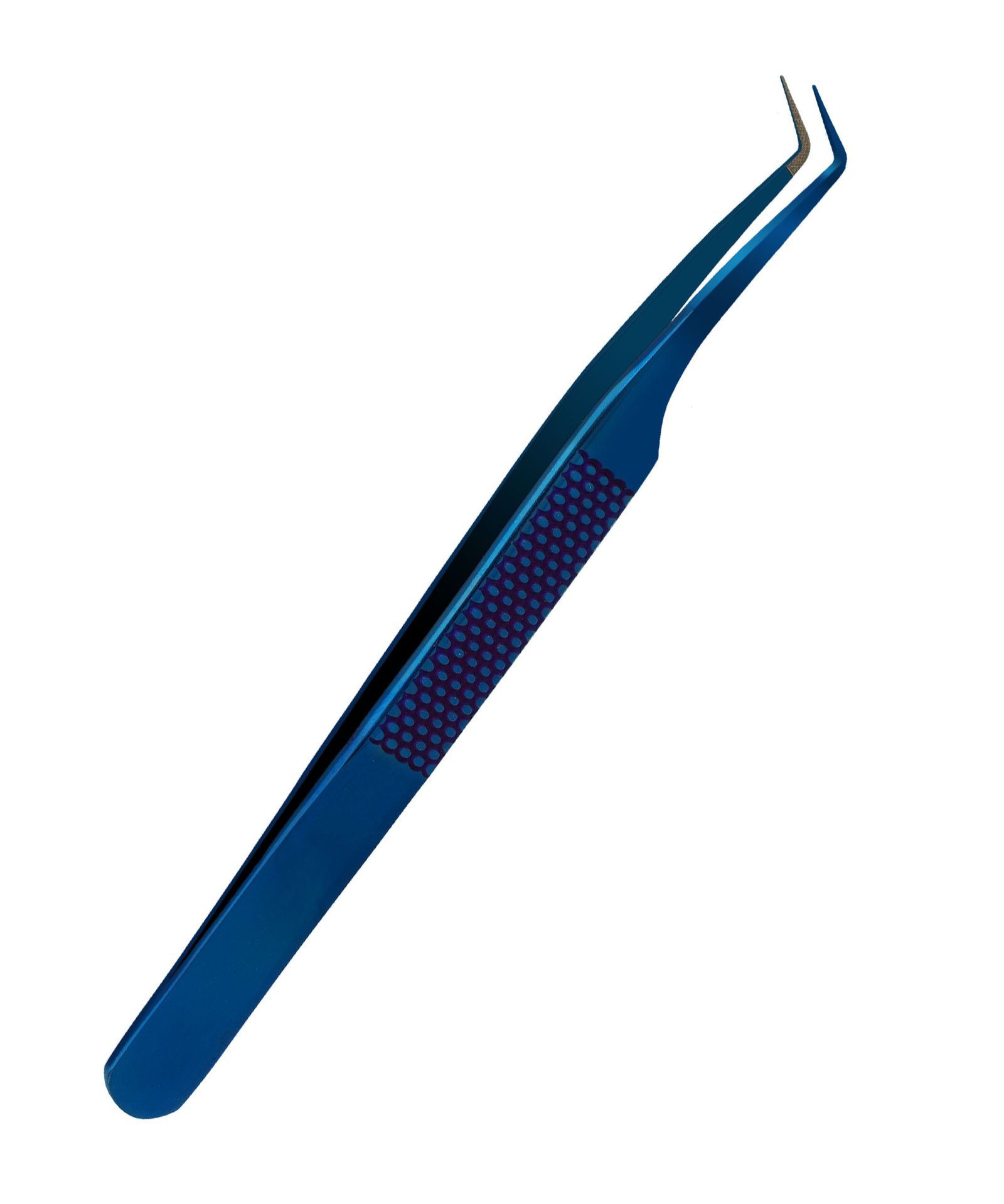 Blue 90-degree eyelash extension tweezer These premium stainless-steel lash tweezers offer precision, durability, and effortless control. Perfect for selecting, isolating, and applying eyelash extensions, their fine curved tips ensure easy maneuvering at any angle. Lightweight, rust-free, and compact, they’re ideal for both professional use and everyday beauty routines. The low-resistance, quick-rebound design provides smooth, comfortable handling every time.