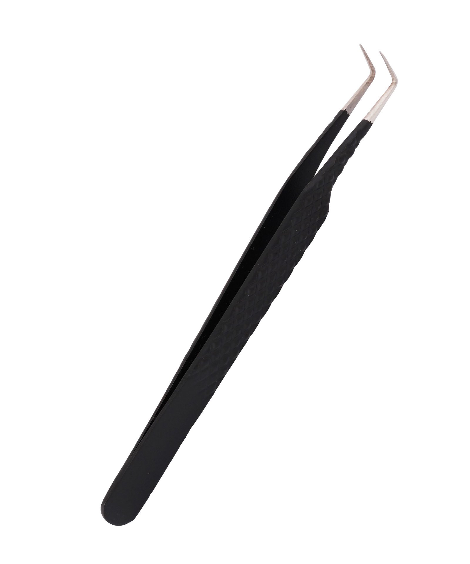 90-degree eyelash extension tweezer with silver Tip (Black)