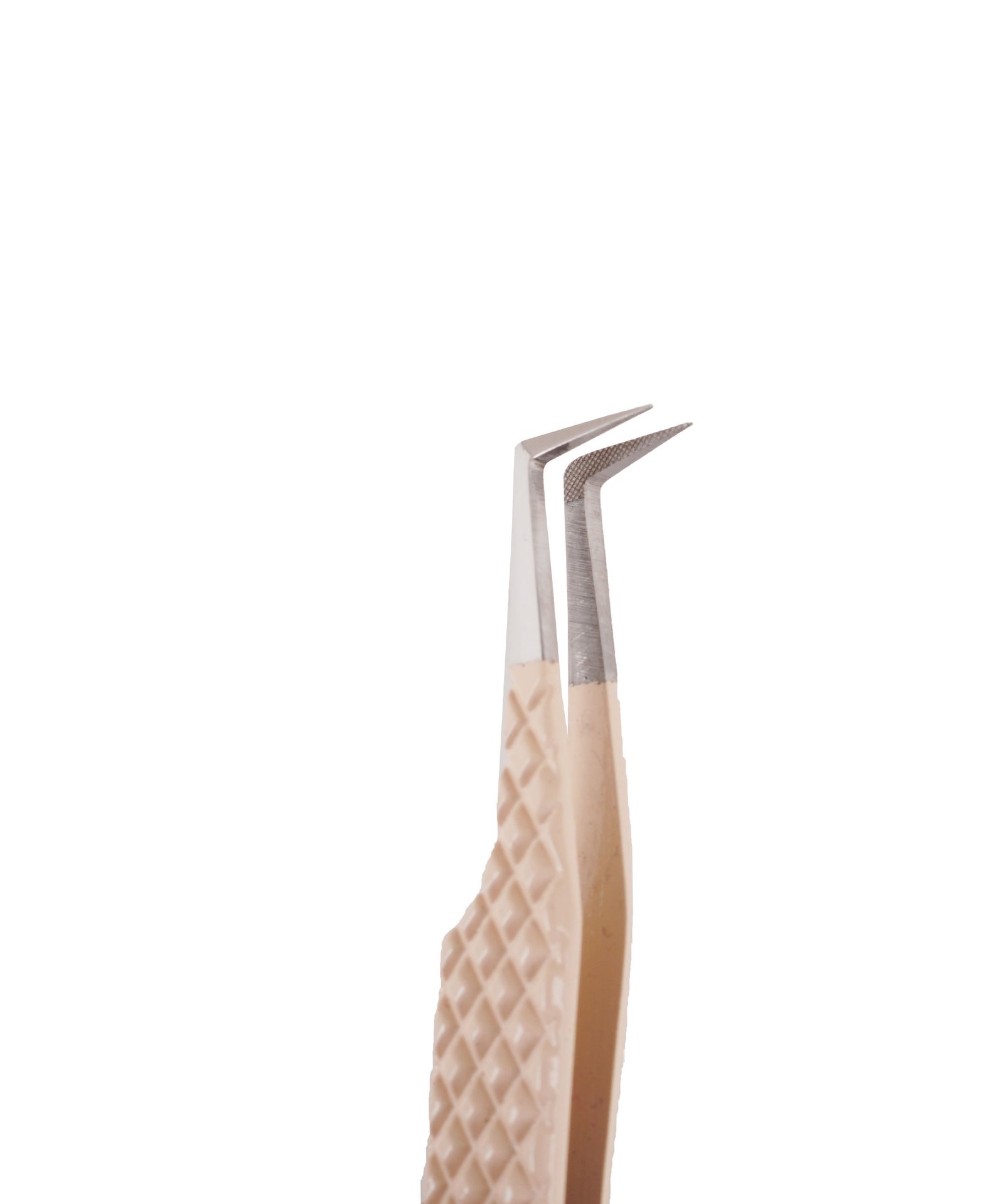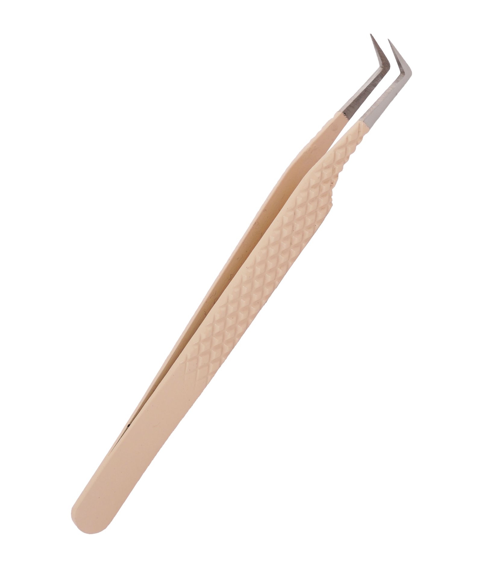 90-degree eyelash extension tweezer with silver Tip (Nude)