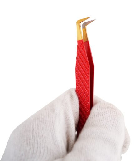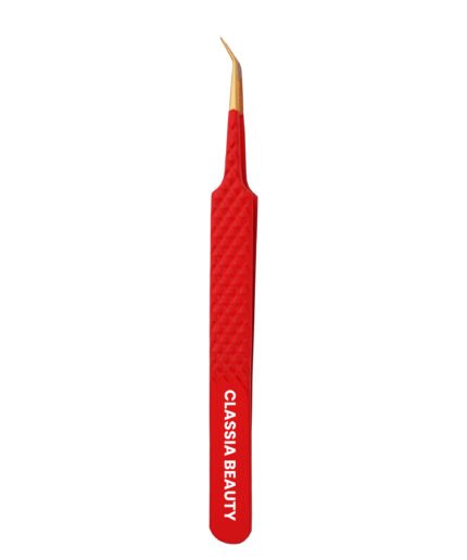 Nano 45-degree eyelash extension tweezer with Gold Tip (Red)