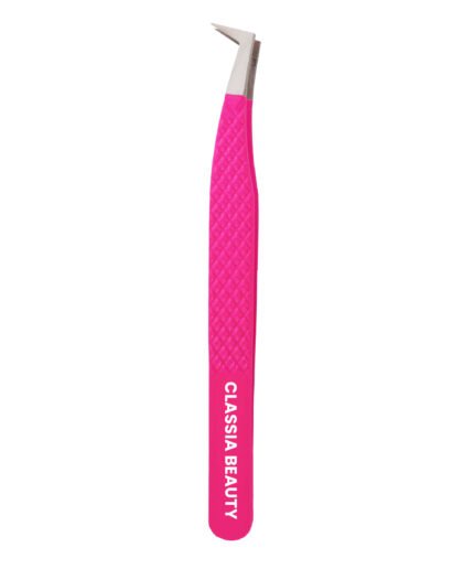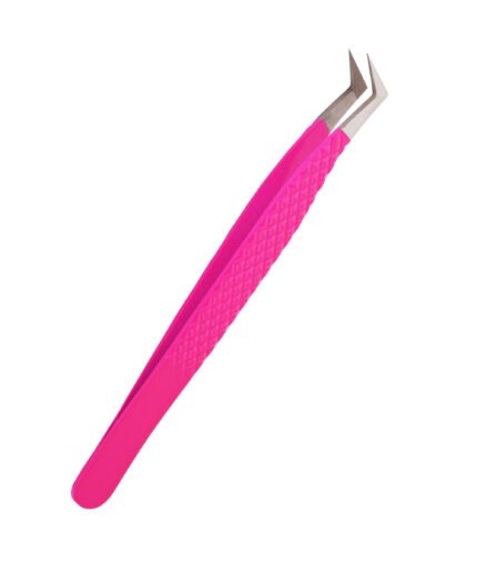 L-Shape boot eyelash extension tweezer with silver Tip (Pink Double Shade)