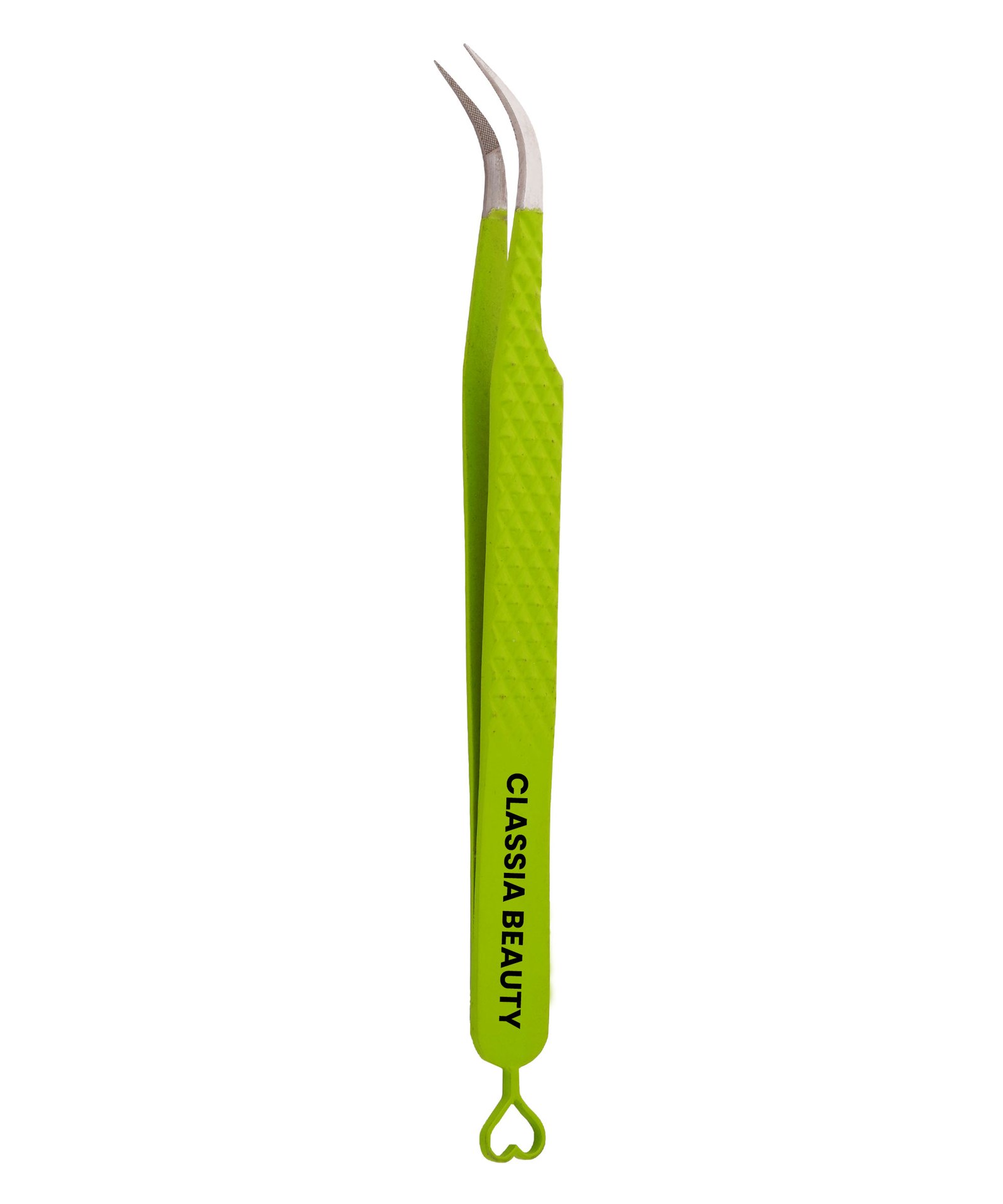 Olive Curved eyelash extension tweezer with silver Tip Fiber-Tip has been crafted using 100% stainless steel for precision and, consequently, convenience. Moreover, this lightweight, durable set is perfect for lash artists who are working on their own projects as well as professional lash artists.