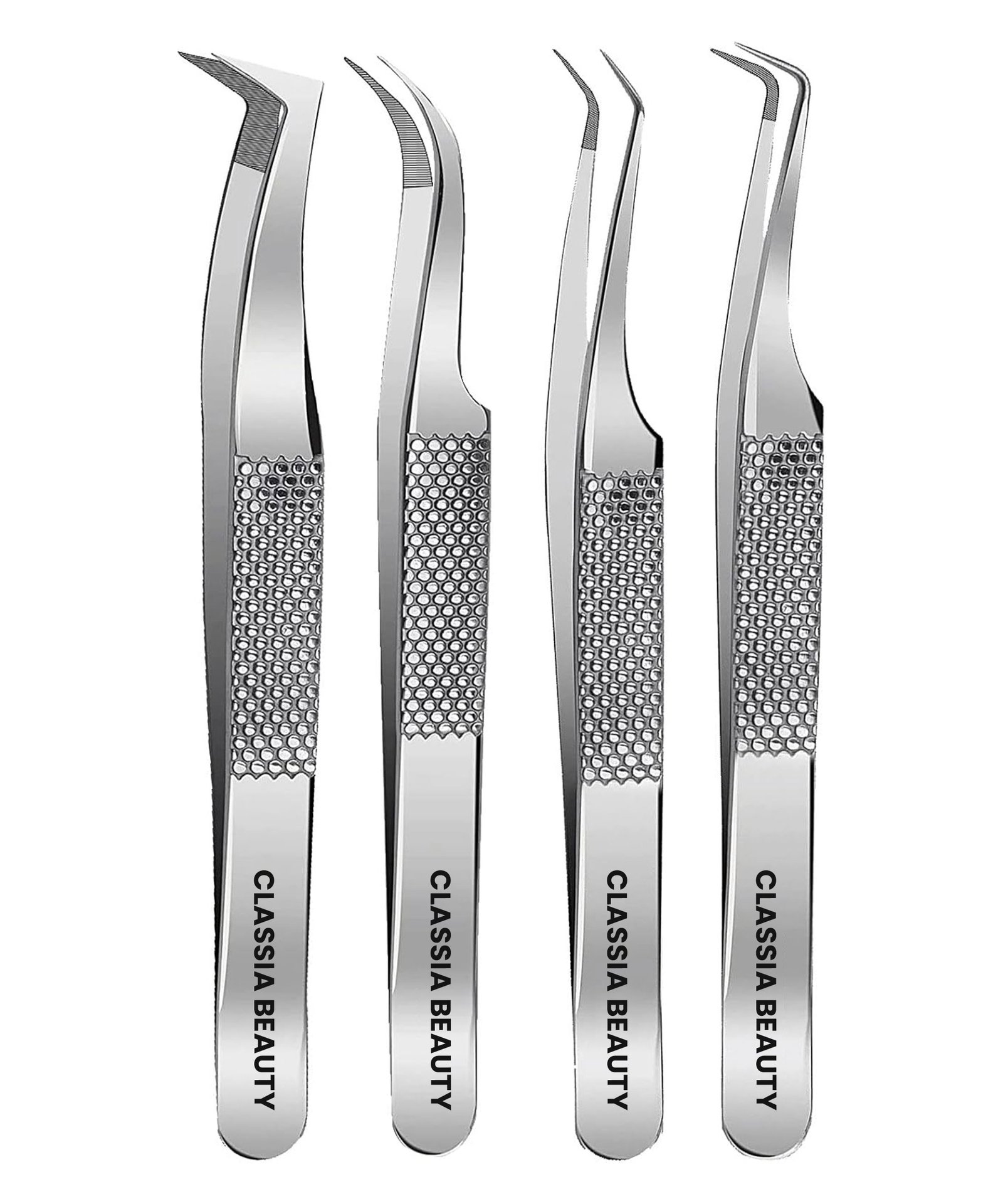 Pack of 4 eyelash extension tweezer Dull (Silver)
