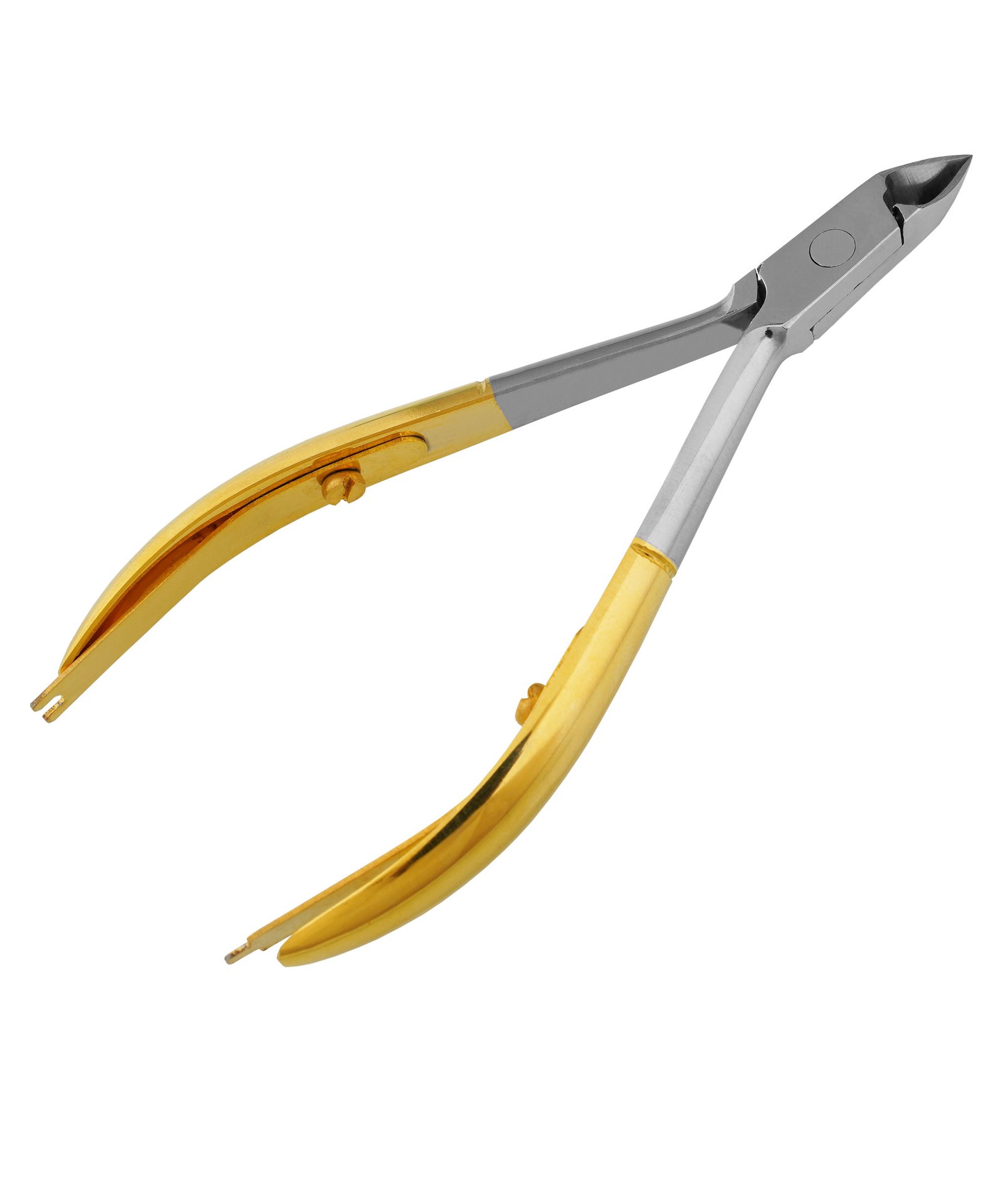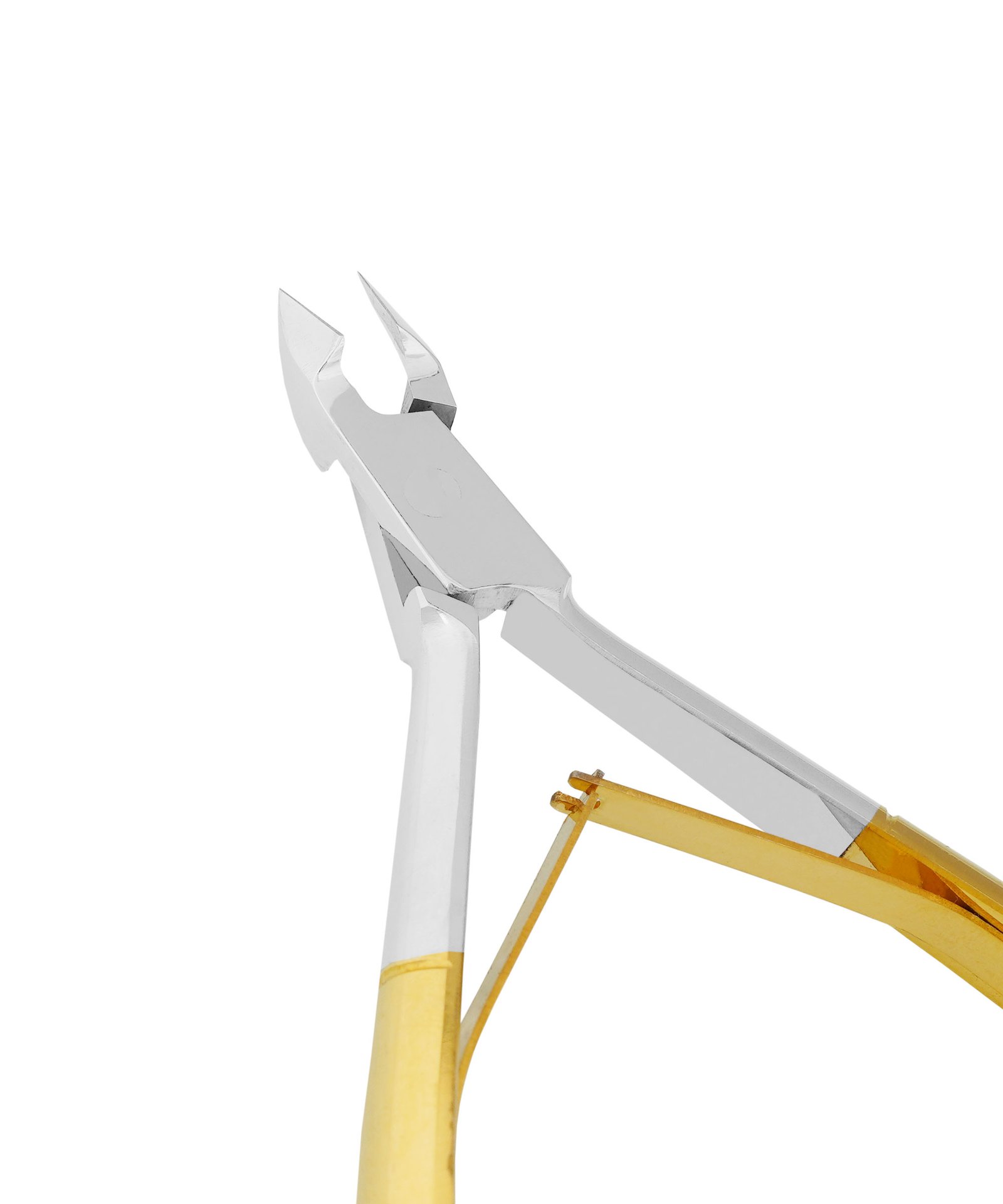 Gold and Silver Cuticle Nipper delivers durable, ultra-precise cuticle removal. Its hand-filed, ultra-thin blades ensure clean, accurate trimming every time. Part of the Ultra Precision Series, this stainless steel tool features a Titanium-coated finish for enhanced performance and superior rust resistance. Available in a 1/2 jaw size.