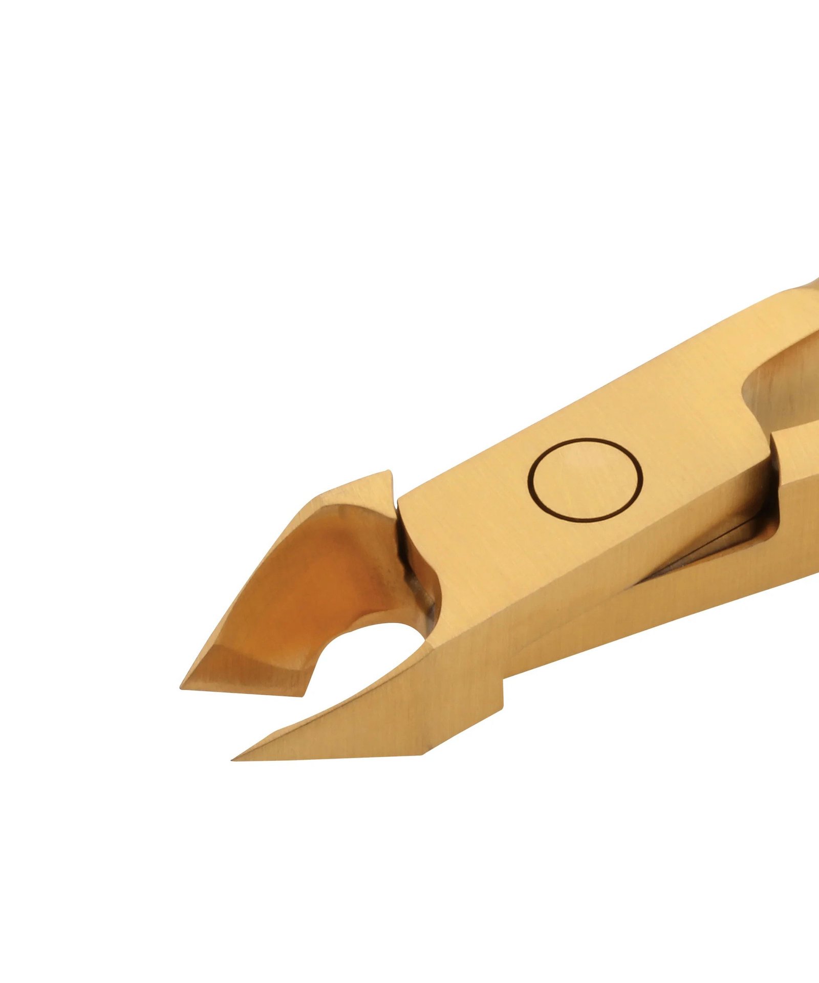 Gold Cuticle Nipper delivers durable, ultra-precise cuticle removal. Its hand-filed, ultra-thin blades ensure clean, accurate trimming every time. Part of the Ultra Precision Series, this stainless steel tool features a Titanium-coated finish for enhanced performance and superior rust resistance. Available in a 1/2 jaw size.