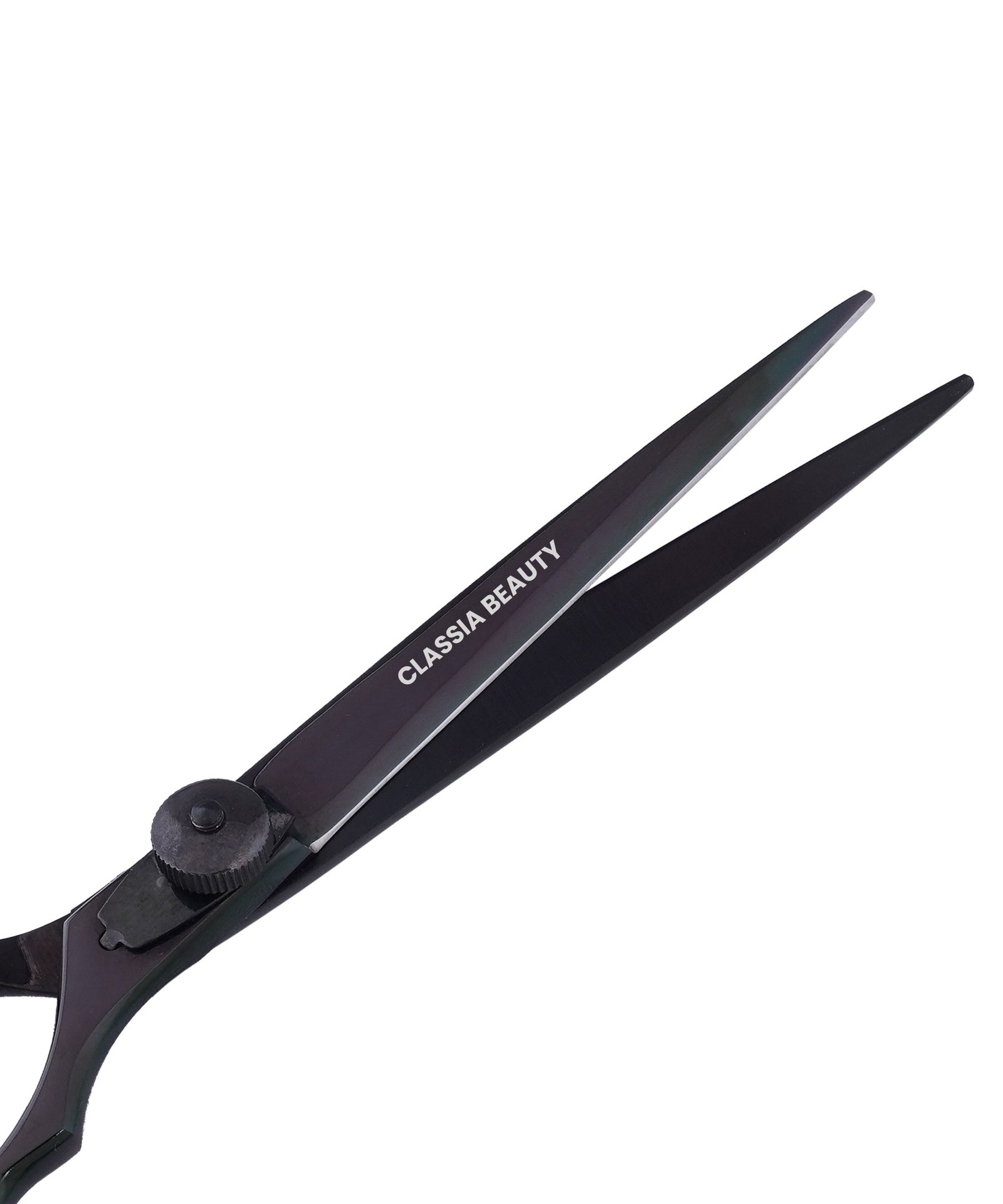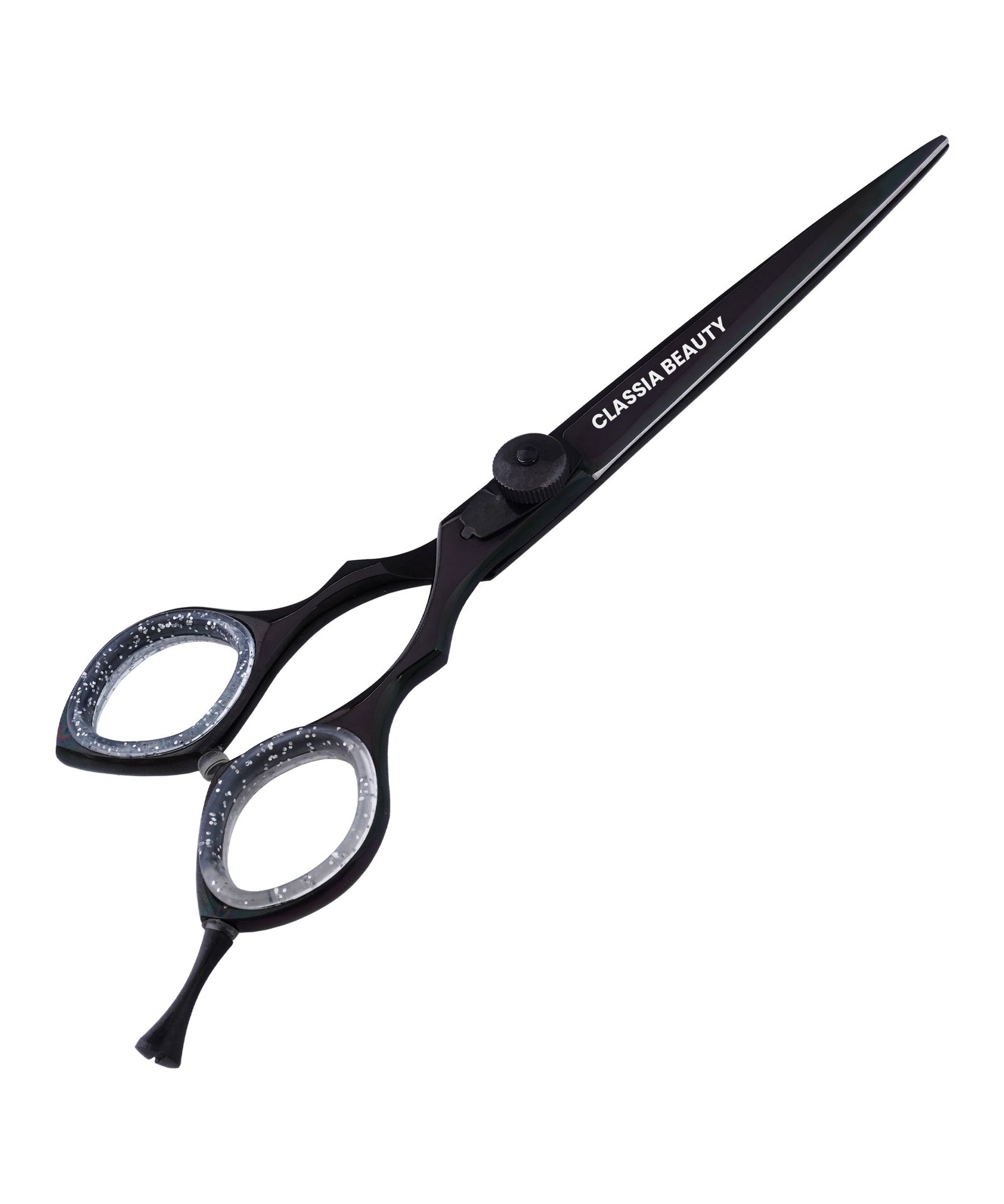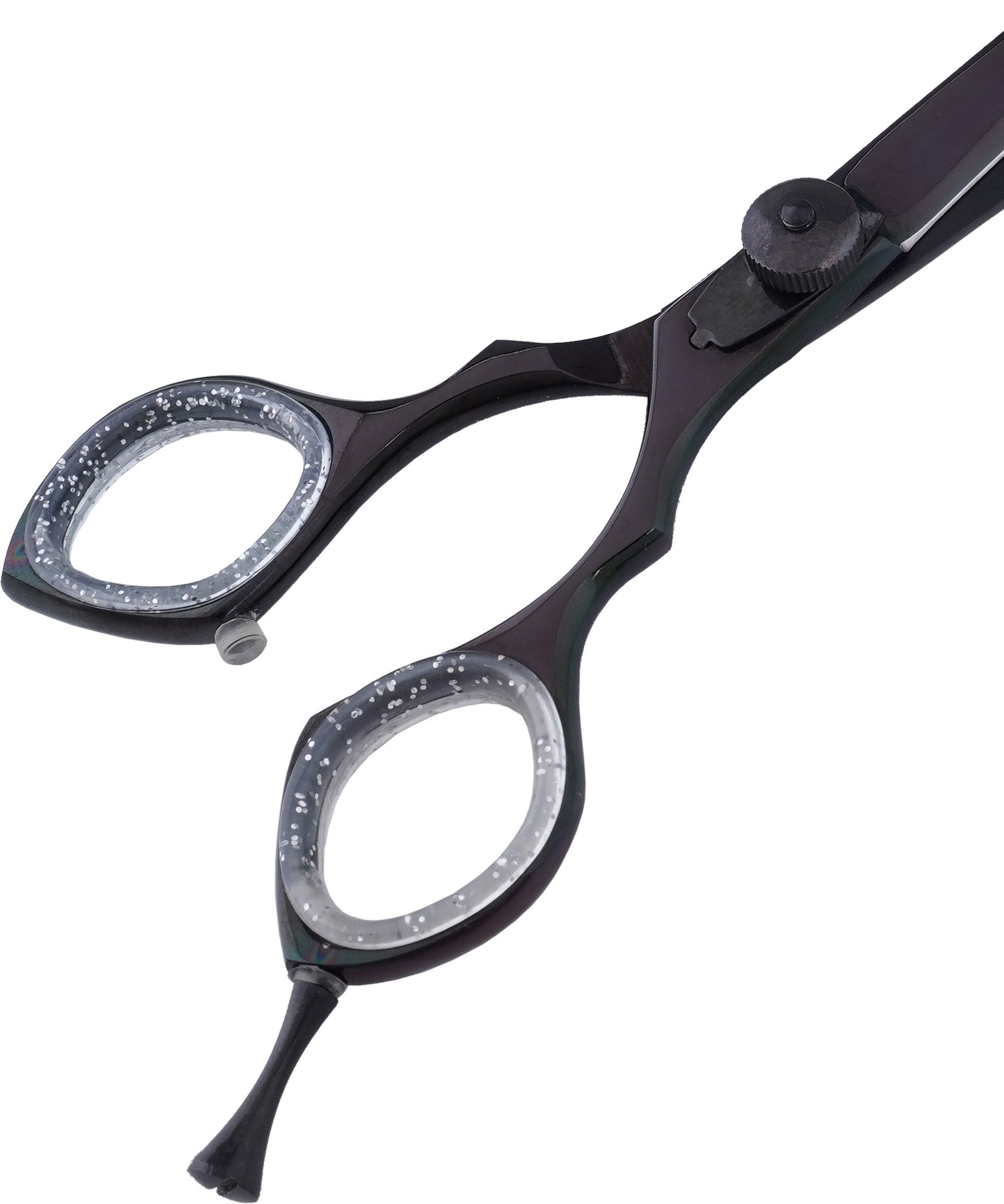 Professional Fancy Black Barber Shears made from 100% premium stainless steel, this set includes one straight-blade cutting shear and one thinning scissor for clean, smooth, and precise cuts. The ergonomic handles reduce hand and wrist strain, making them easy for barbers, stylists, and home users alike. With ultra-sharp blades, a lightweight feel, and an adjustable tension screw, these shears offer comfortable, effortless, and long-lasting performance.