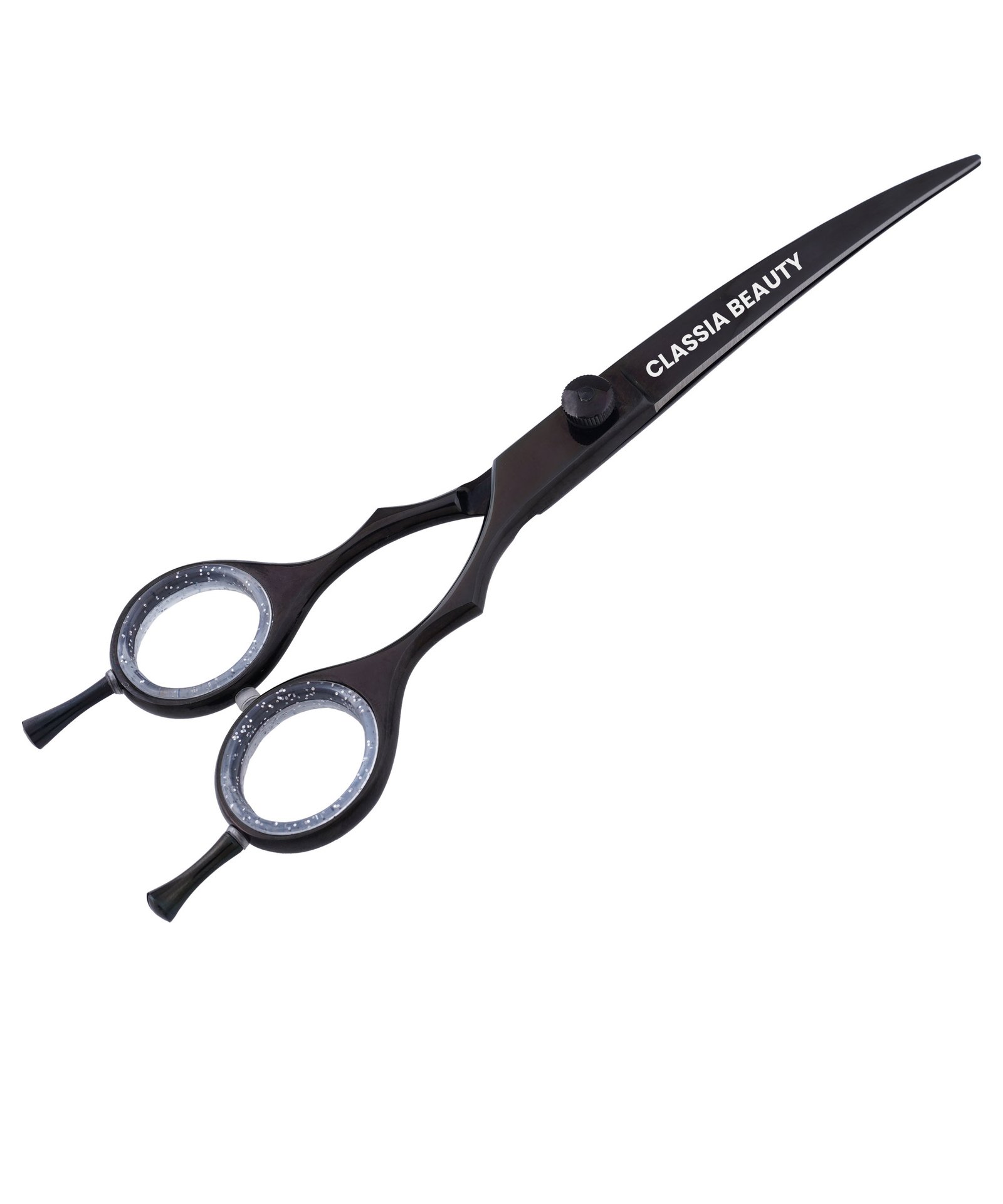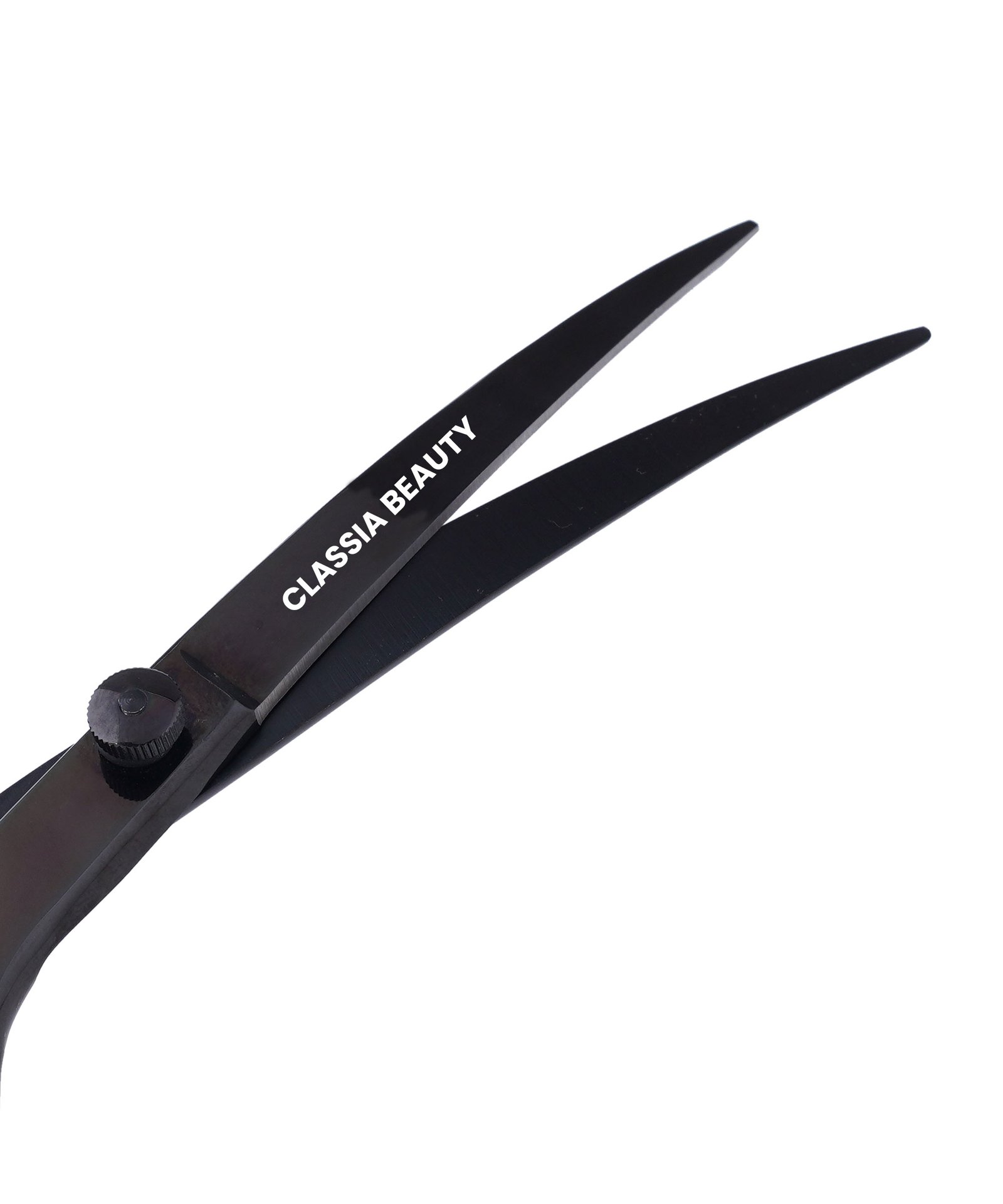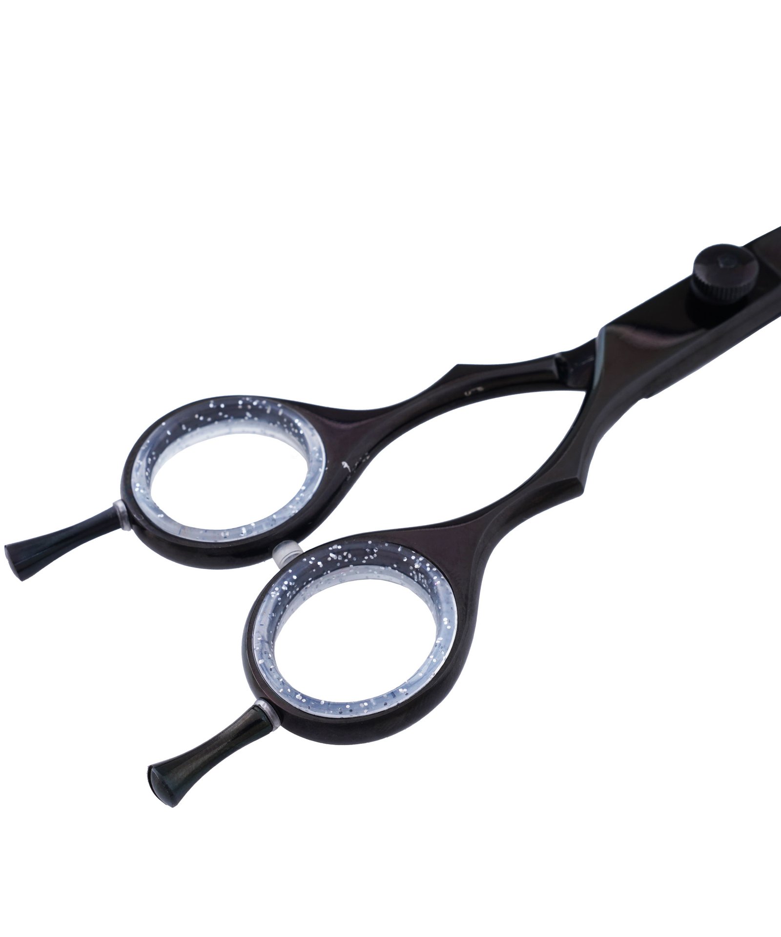 Professional Fancy Black Barber Shears made from 100% premium stainless steel, this set includes one straight-blade cutting shear and one thinning scissor for clean, smooth, and precise cuts. The ergonomic handles reduce hand and wrist strain, making them easy for barbers, stylists, and home users alike. With ultra-sharp blades, a lightweight feel, and an adjustable tension screw, these shears offer comfortable, effortless, and long-lasting performance.