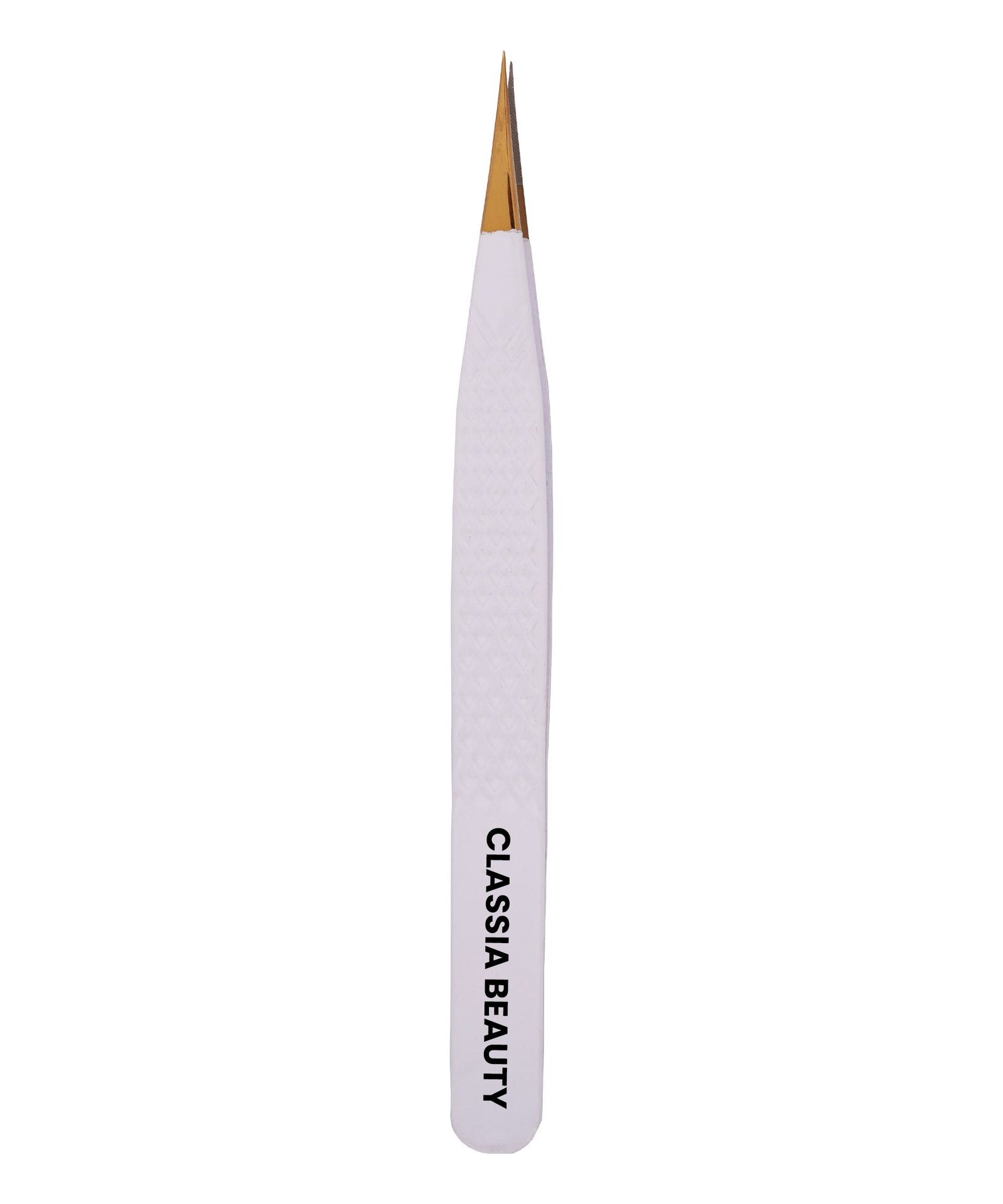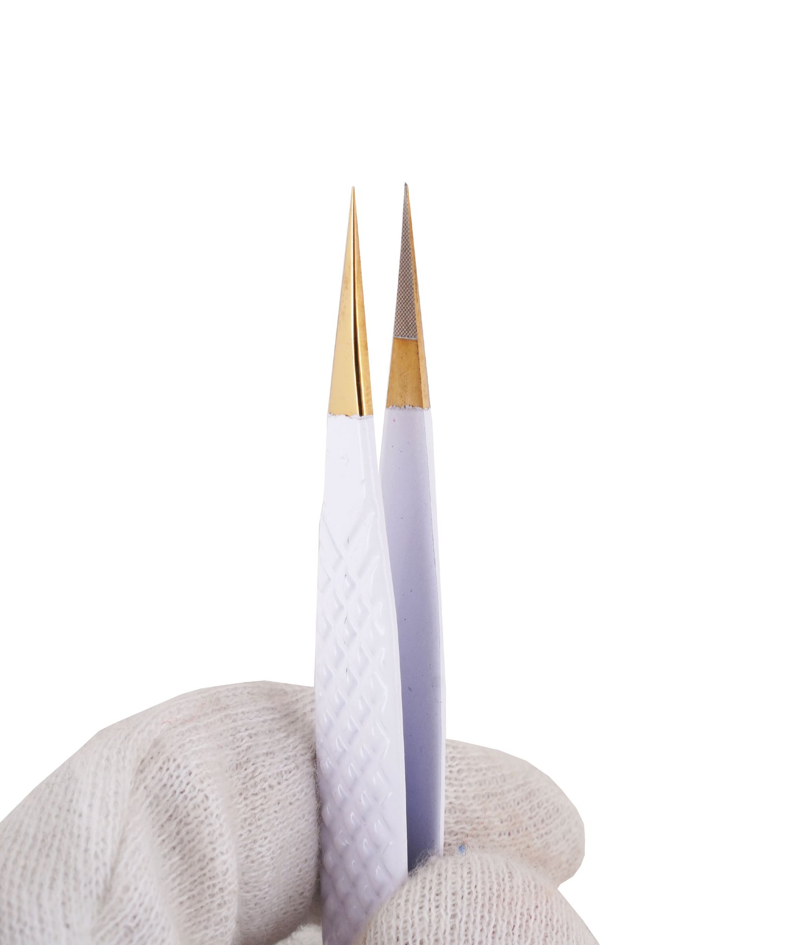 White Straight eyelash extension tweezer with gold Tip Fiber-Tip has been crafted using 100% stainless steel for precision and, consequently, convenience. Moreover, this lightweight, durable set is perfect for lash artists who are working on their own projects as well as professional lash artists.